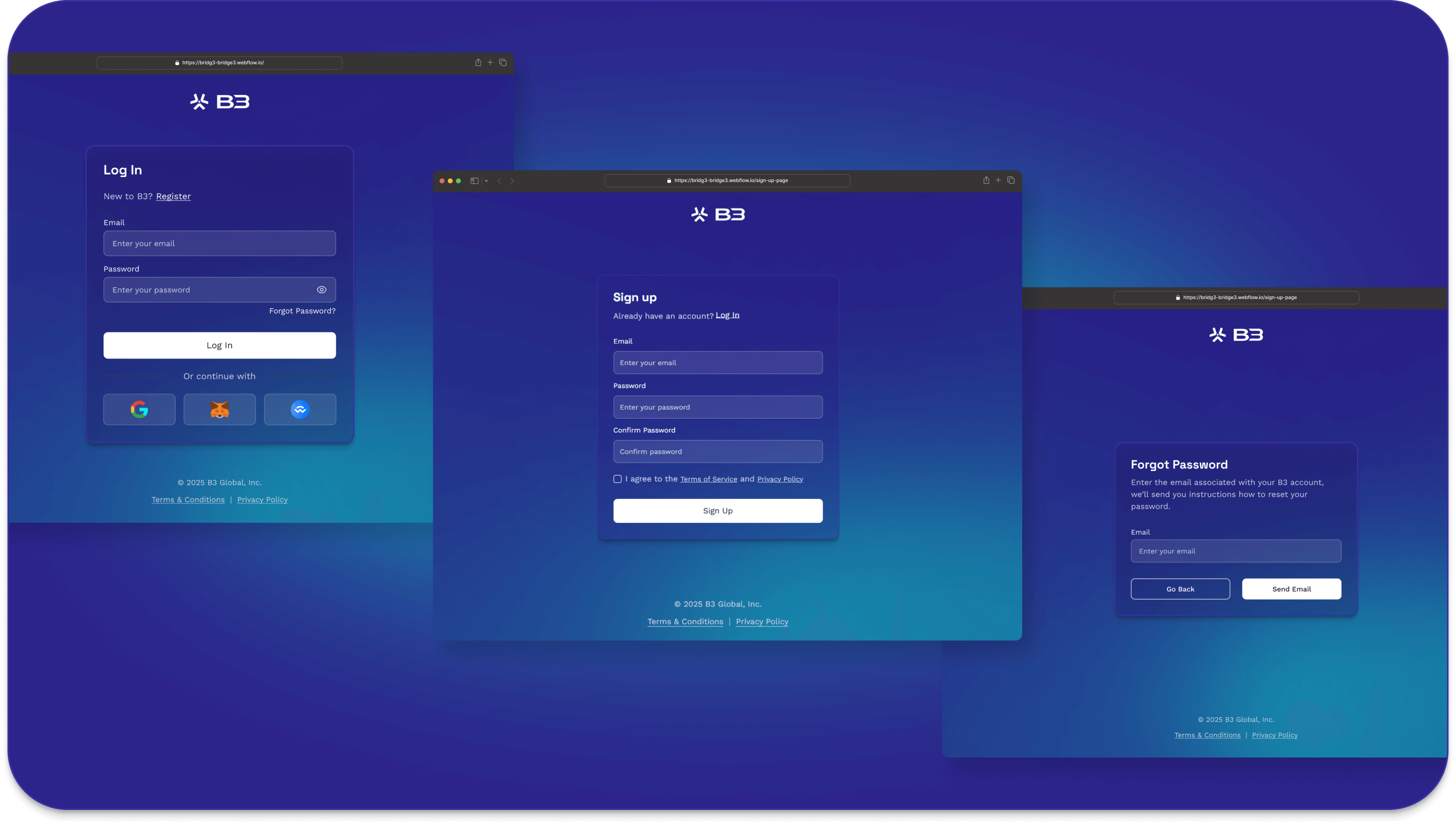 The Bridg3 platform supports an end-to-end flow for domain discovery, bidding, and portfolio management. Webflow allowed for rapid development while keeping every page fast, accessible, and visually consistent.